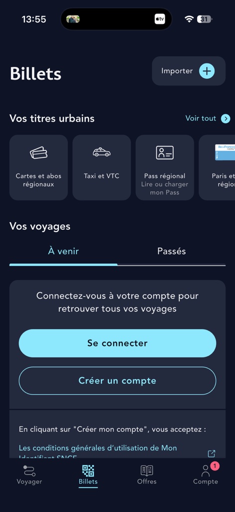 Connectez-vous à votre compte pour retrouver vos voyages ou cliquez sur "Importer".