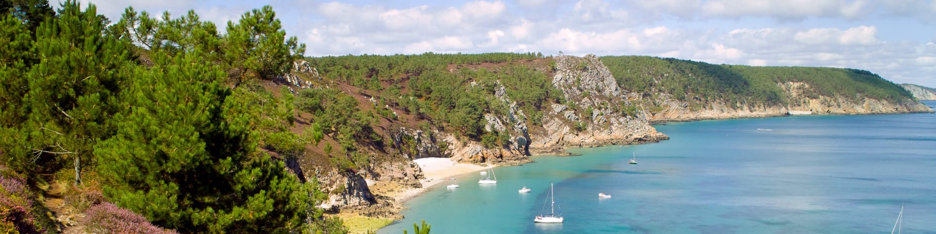 Un sable fin et doré, une mer turquoise, une végétation luxuriante aux alentours, pas de vent ou si peu... Le décor est paradisiaque mais il ne se donne pas à n'importe qui ! Car pour atteindre cette plage, il est nécessaire de marcher un peu le long des sentiers côtiers depuis la pointe de Pen Al Lan ou la pointe du Cosmeur.