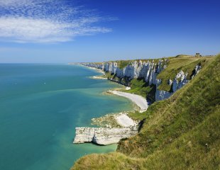 Autour de Dieppe, la côte d'Albâtre est une côte sauvage de 100km de falaises, du calcaire sur 100m de hauteur, dominant une eau turquoise. Là-bas, c…
