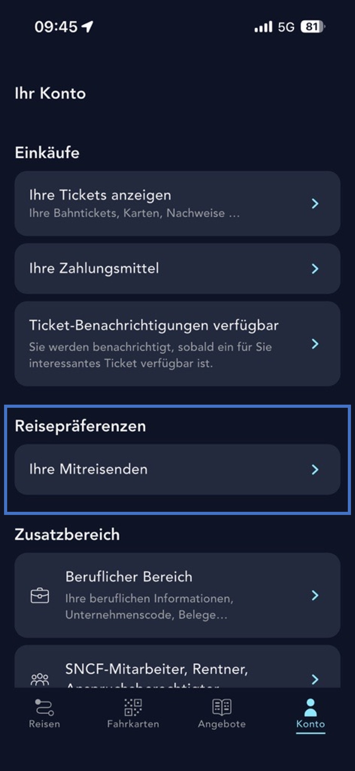 Klicken Sie unter "Reisepräferenzen" auf "Ihre Begleiter".