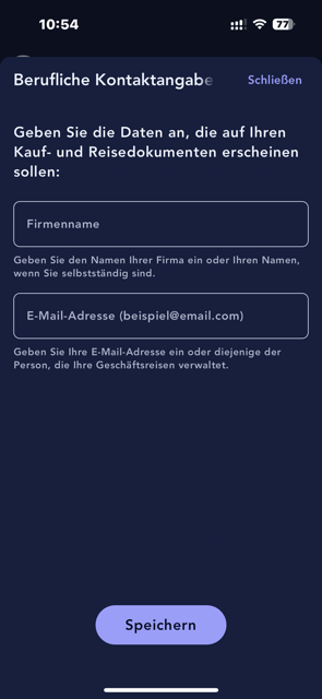 Wählen Sie den Reisezweck, indem Sie entweder „geschäftlich" oder „privat" auswählen