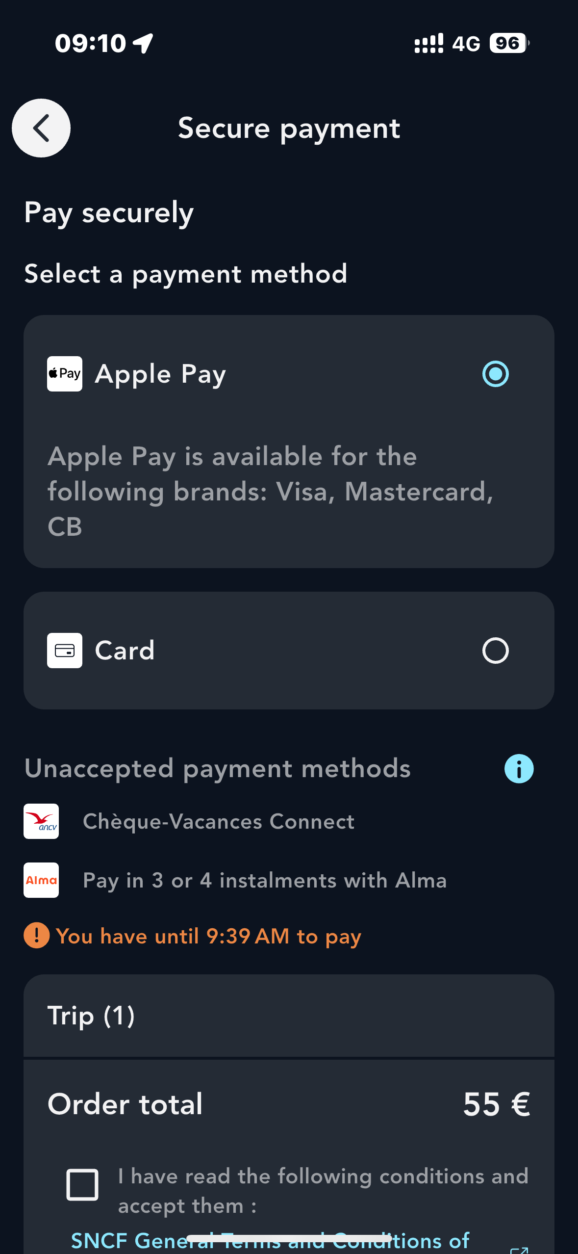 If you have held your option on the SNCF Connect website or app, your option must be confirmed and paid for on SNCF Connect.