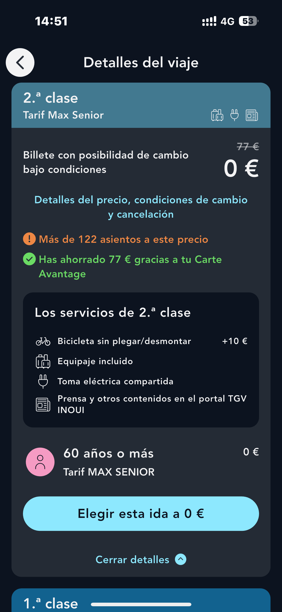 Nota: Las reservas MAX SENIOR se abren 30 días antes de la salida (y no 90 días como las reservas estándar) y son en 2.ª clase.