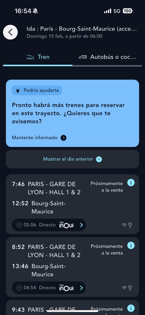 También puedes suscribirte a la alerta de reserva cuando busques un viaje si los trenes aún no están abiertos a la venta.