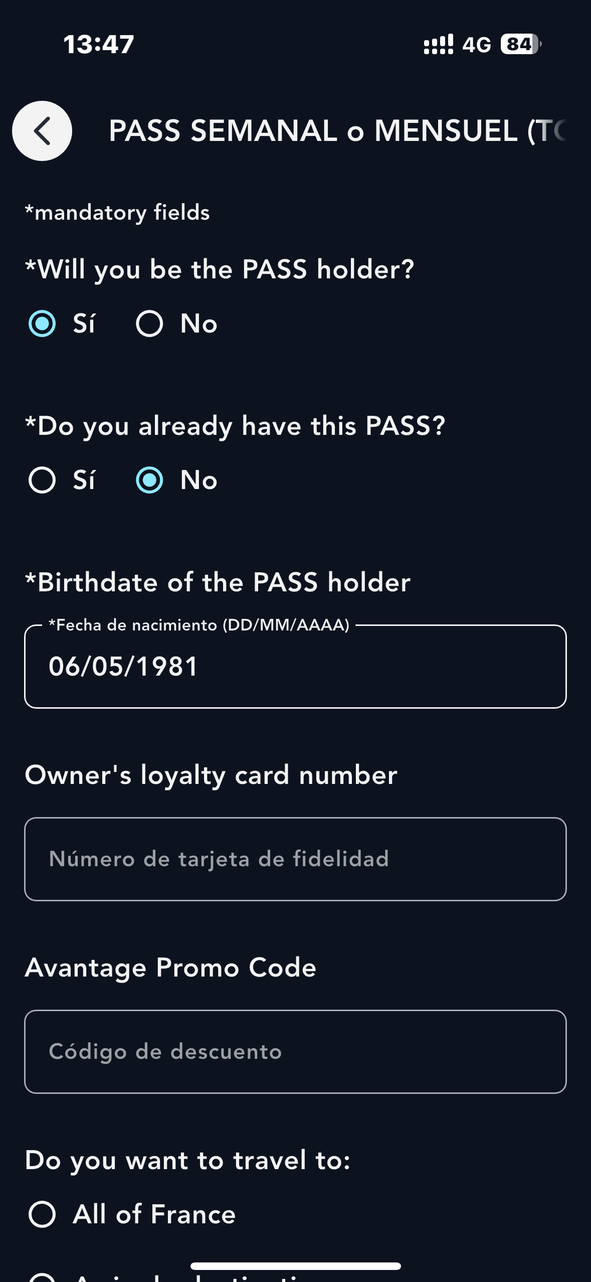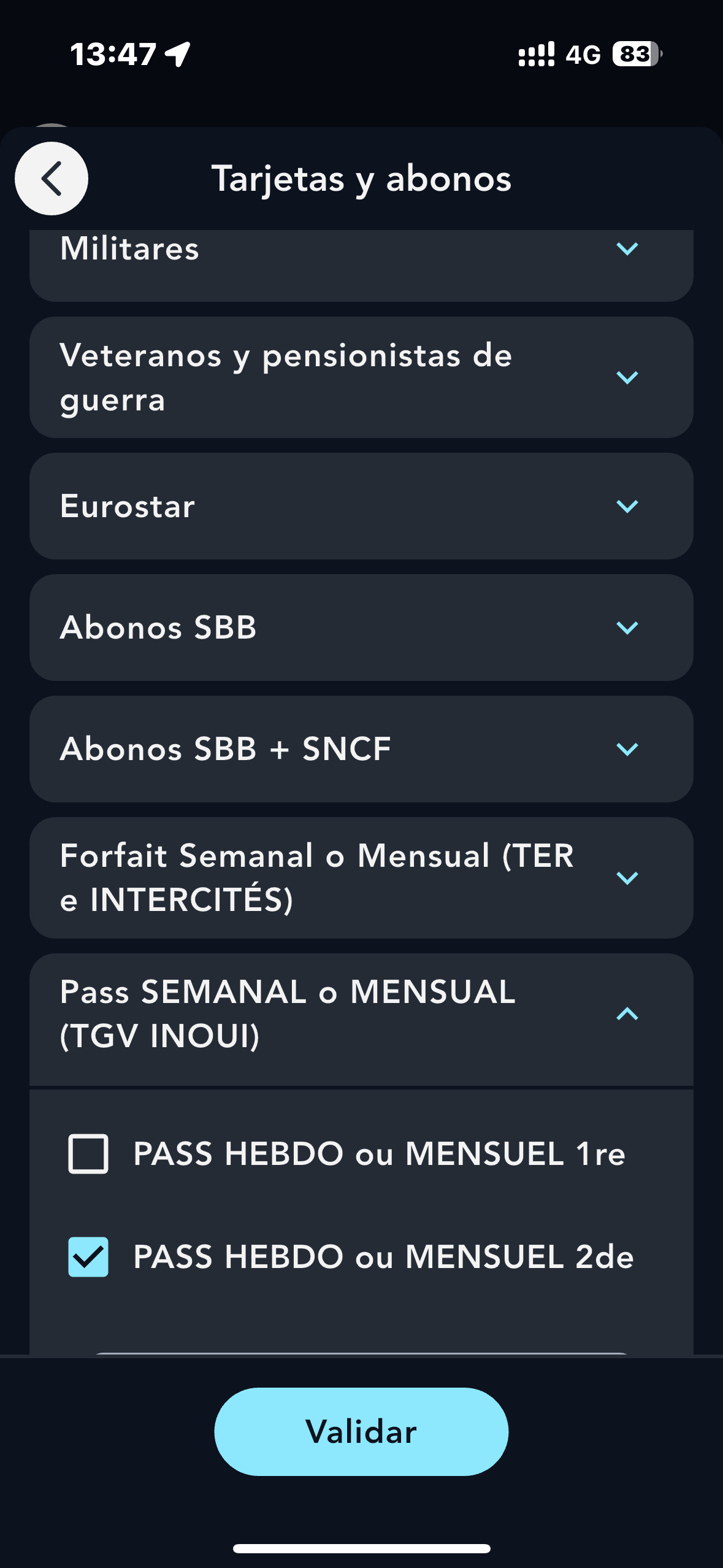 Si optas por un PASS "un trayecto", solo podrás reservar billetes para el trayecto que hayas seleccionado en TGV INOUI.