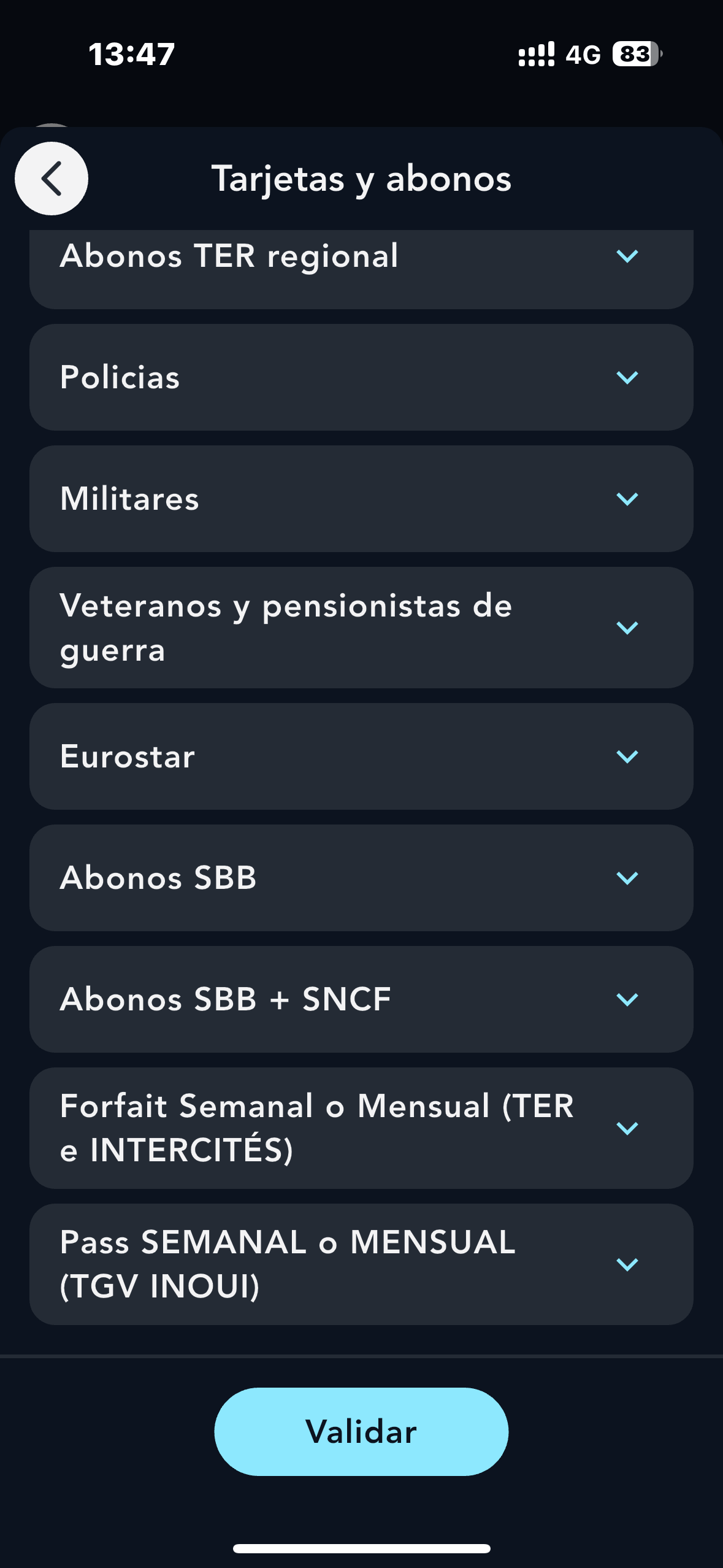 Los trayectos en TER, INTERCITÉS u OUIGO no están incluidos en el PASS.