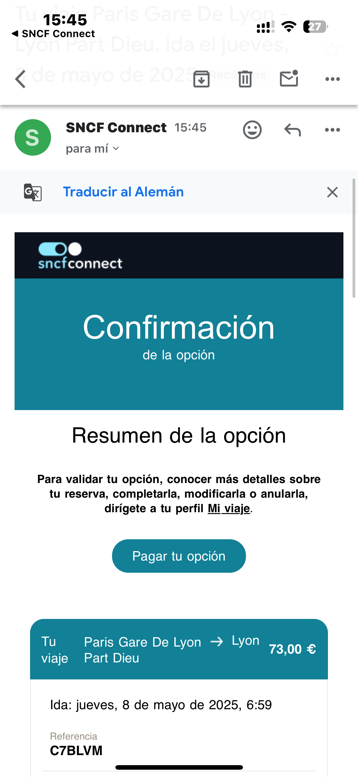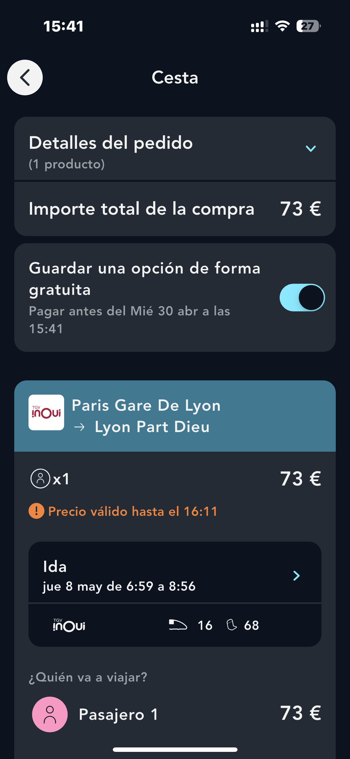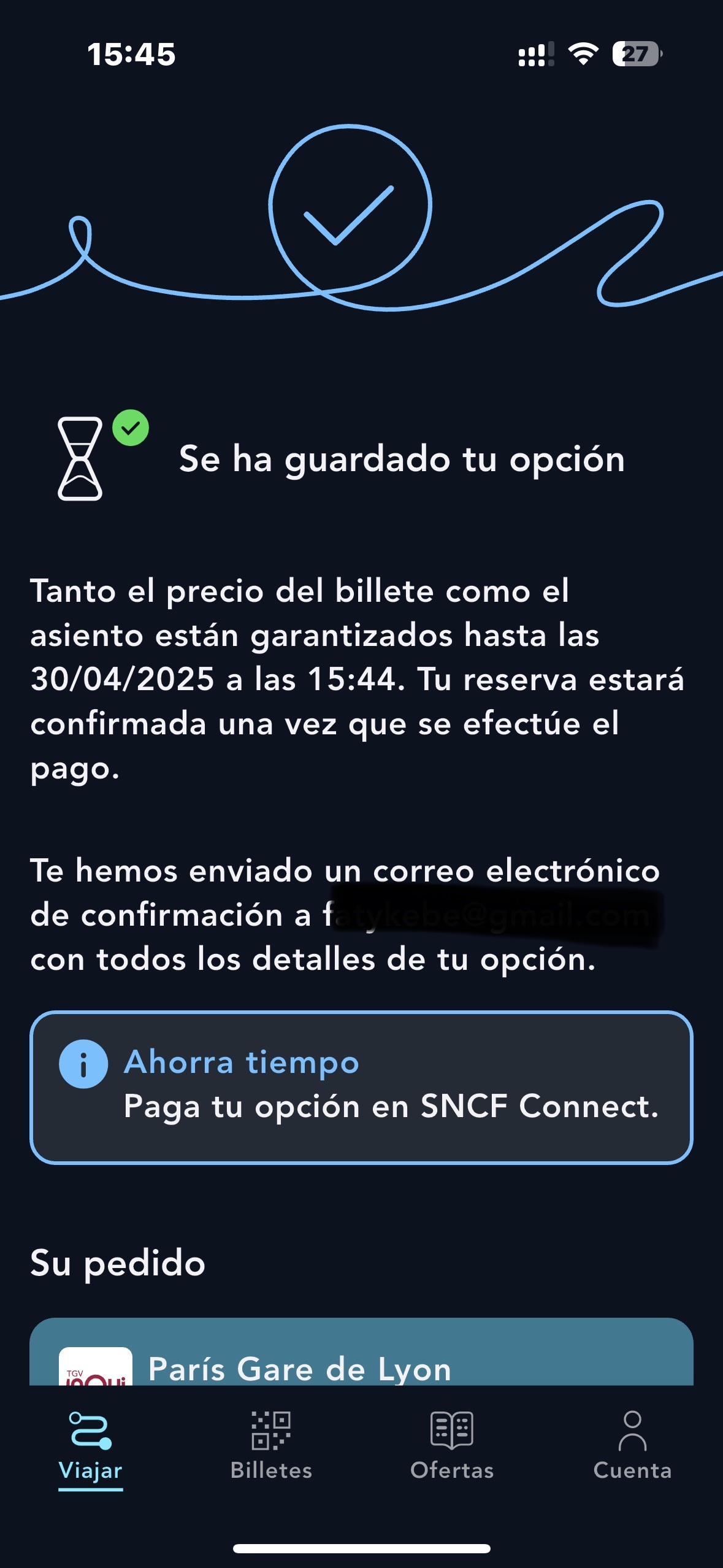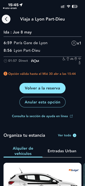 Si has bloqueado el precio en el sitio web o la aplicación de SNCF Connect, este bloqueo debe estar confirmado y pagado en SNCF Connect.