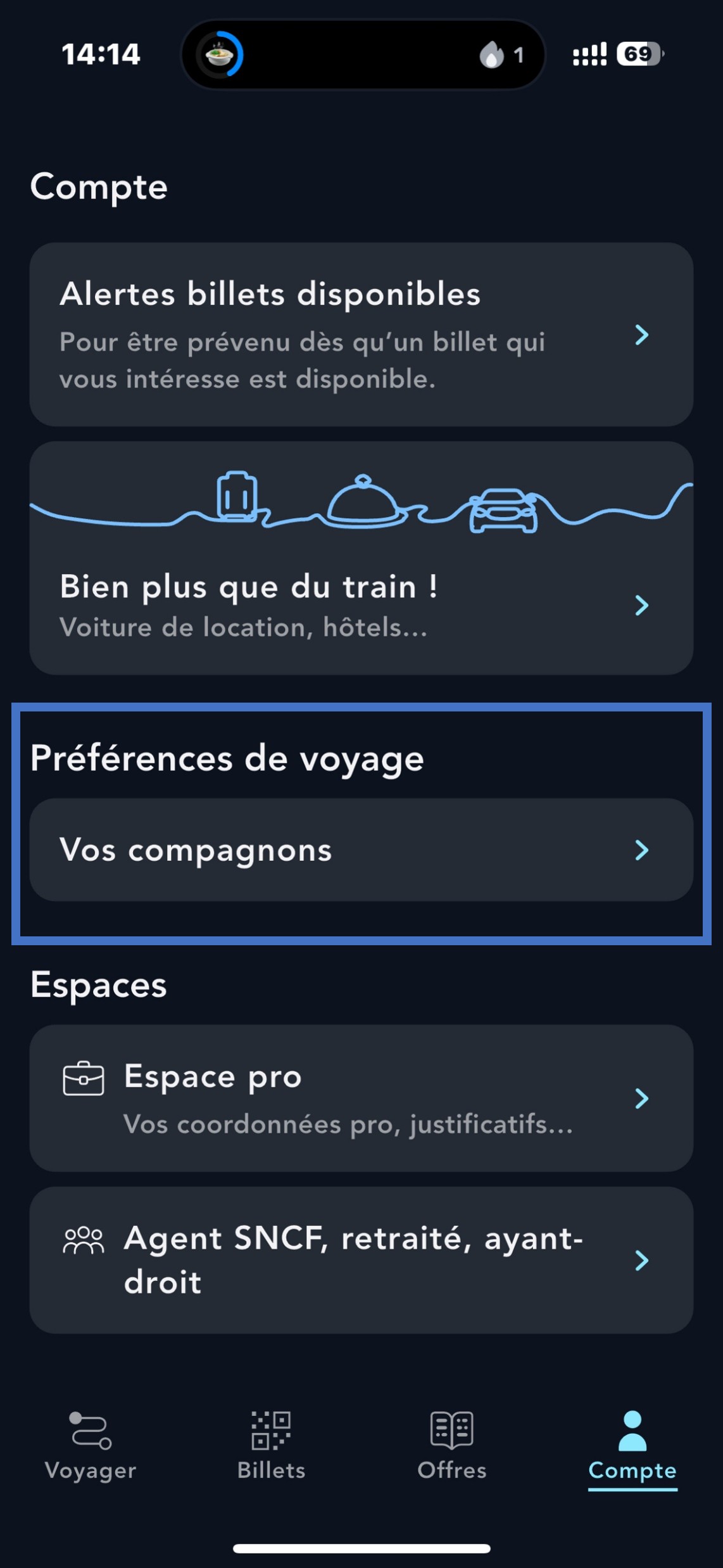 Cliquez sur "Vos compagnons" dans "Préférences de voyage".