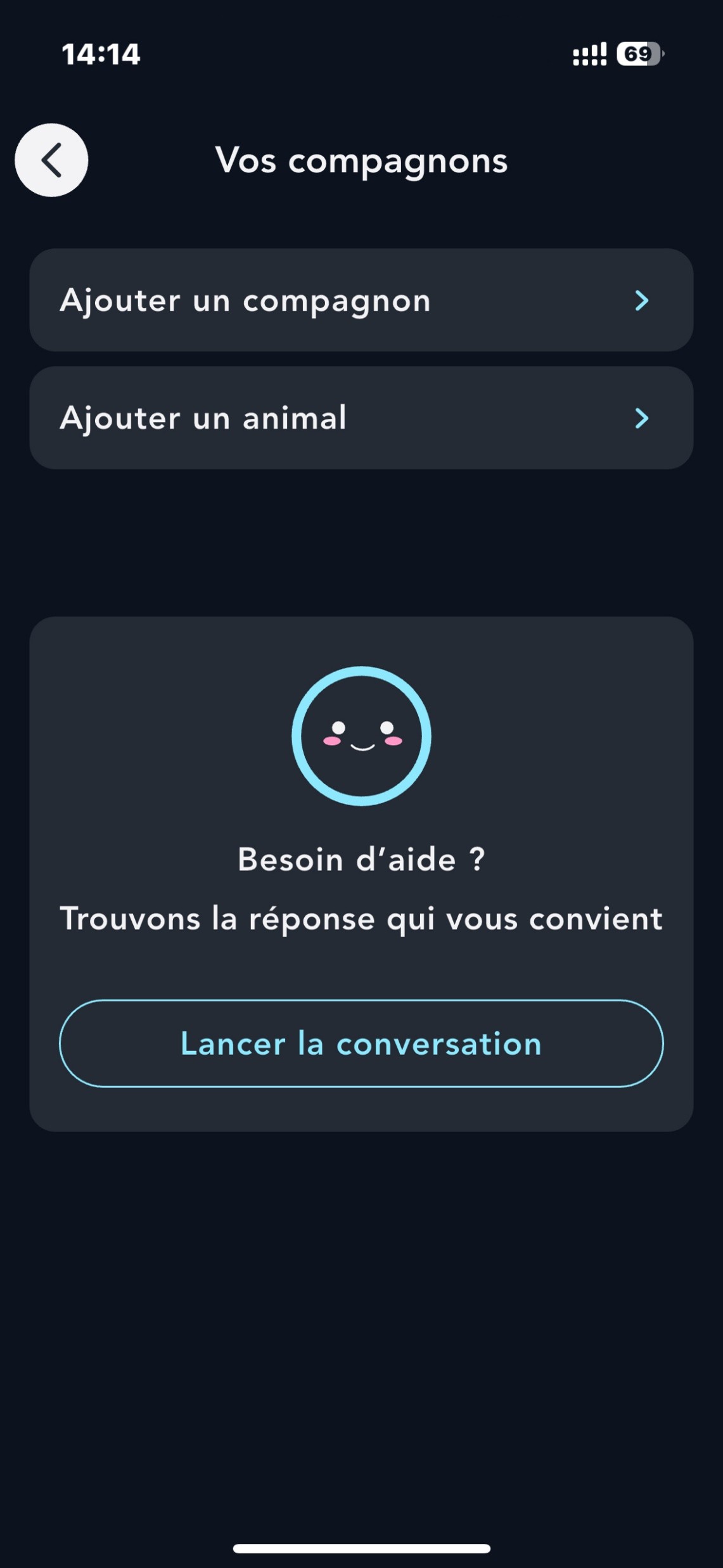 Cliquez sur "Ajouter un compagnon" ou "Ajouter un animal".