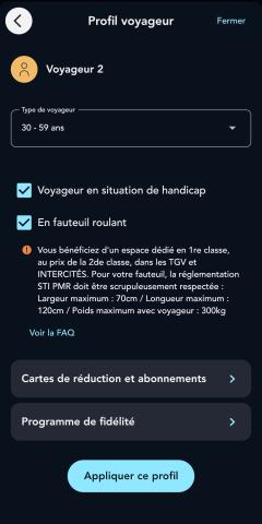 Renseignez les cartes et abonnements du voyageur si applicable.