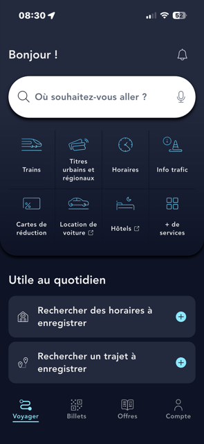 Pour recevoir les notifications sur vos trajets et la circulation de vos trains en temps réel, vérifiez que vous avez bien activé l’option depuis la rubrique « Compte » de votre application.