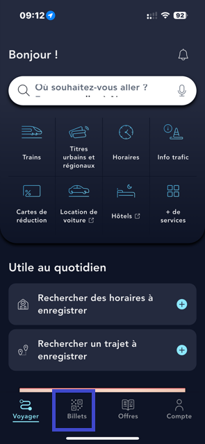 Rendez-vous sur l'application dans la rubrique "Billets"
