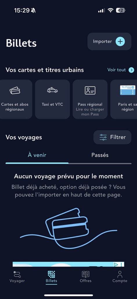 Cliquez sur l'onglet Billets puis sélectionnez Pass régional. Scannez votre Pass et retrouvez tous vos titres de transport.
