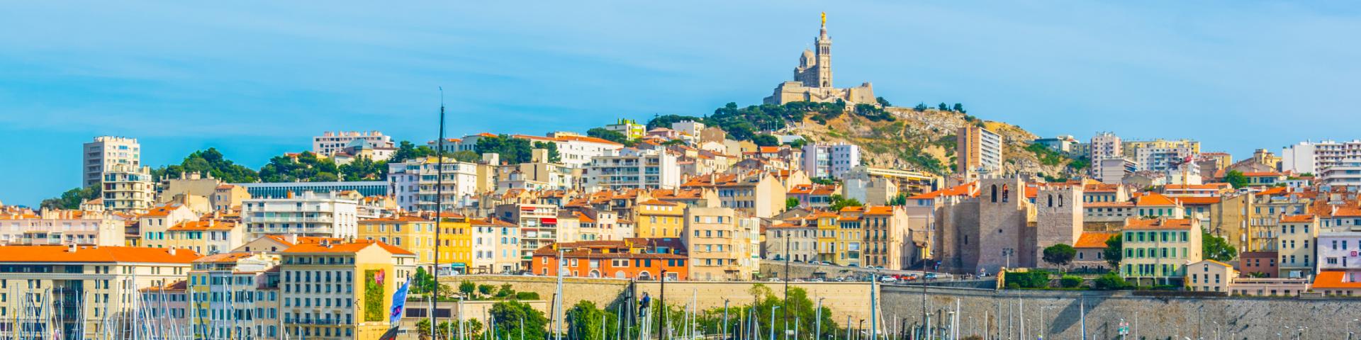 On la voit de loin la "Bonne Mère" : elle domine la ville sur son piton calcaire de 149m. Cette basilique consacrée en 1864 est devenue l’emblème de la ville. Depuis la terrasse, on admire un superbe panorama sur la rade de Marseille et son Vieux Port.