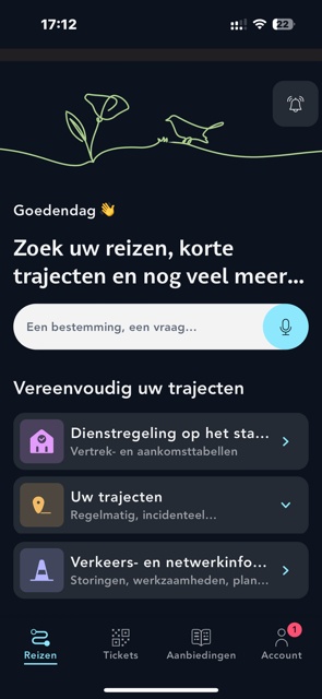 Tik op de startpagina van de app op ‘Dienstregeling op het station’
