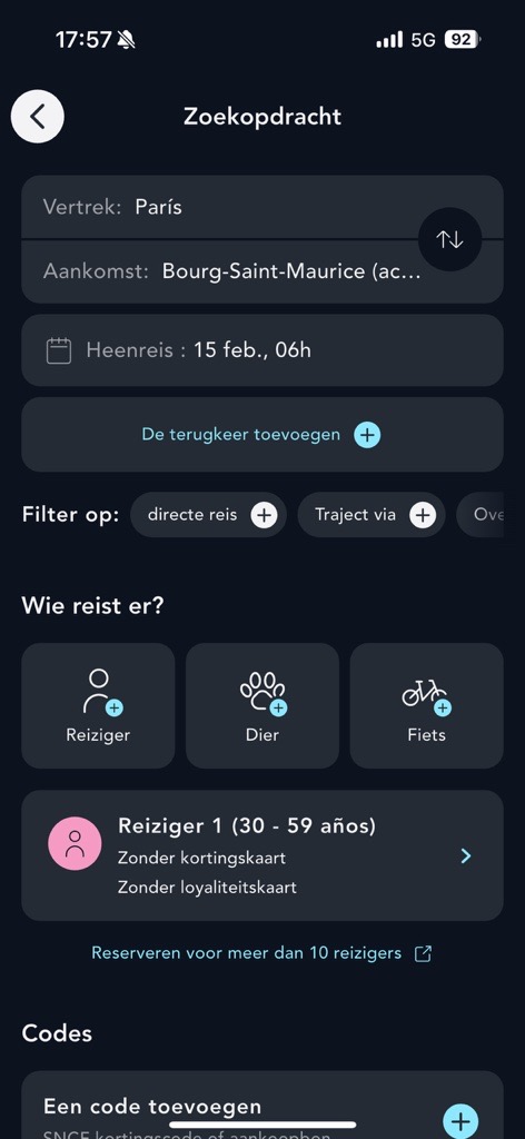 Voer uw traject en uw profiel in als u niet bent ingelogd op uw account.