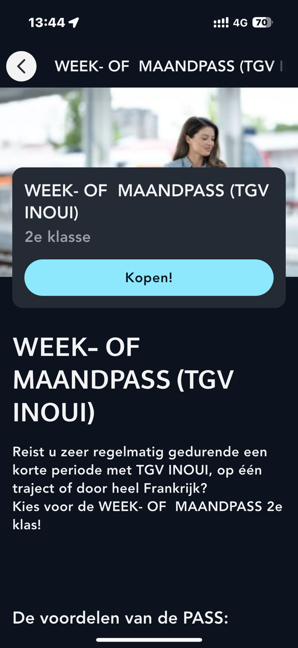 Reist u dagelijks met TGV INOUI op één traject of door heel Frankrijk? Kies voor de PASS HEBDO of PASS MENSUEL in de tweede of eerste klas.