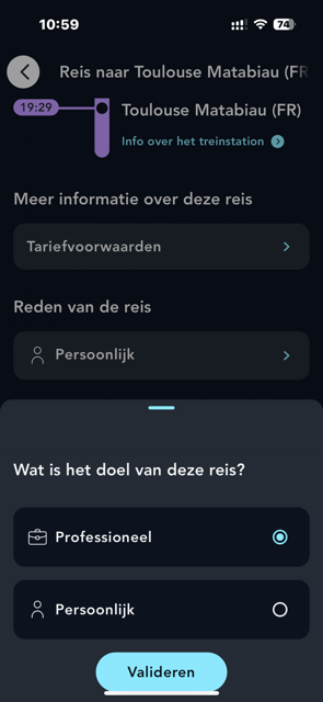 U kunt de reden voor de reis aangeven bij het maken van de boeking (op de zoekpagina) of achteraf (op de pagina Tickets). Hiermee kunt u uw reizen classificeren voor een vereenvoudigd en georganiseerd beheer.