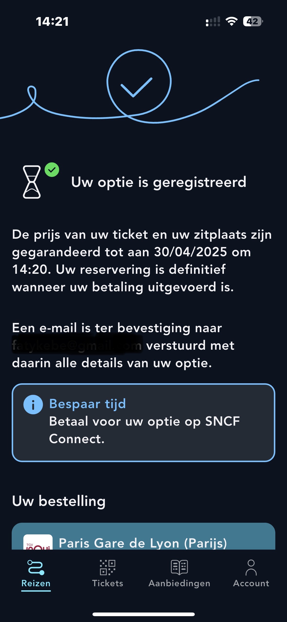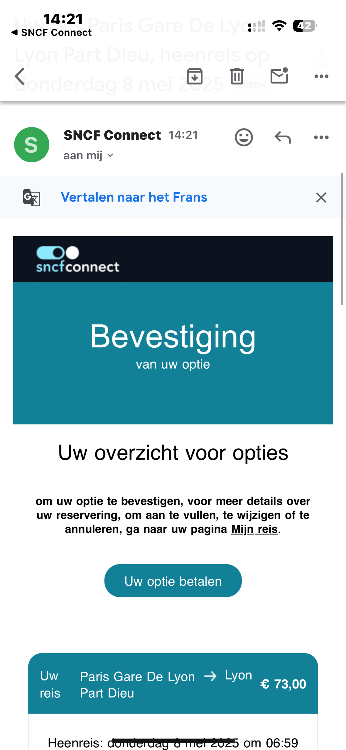 U ontvangt een bevestigingse-mail met een gegarandeerde prijs vóór de uiterste betaaldatum van de optie