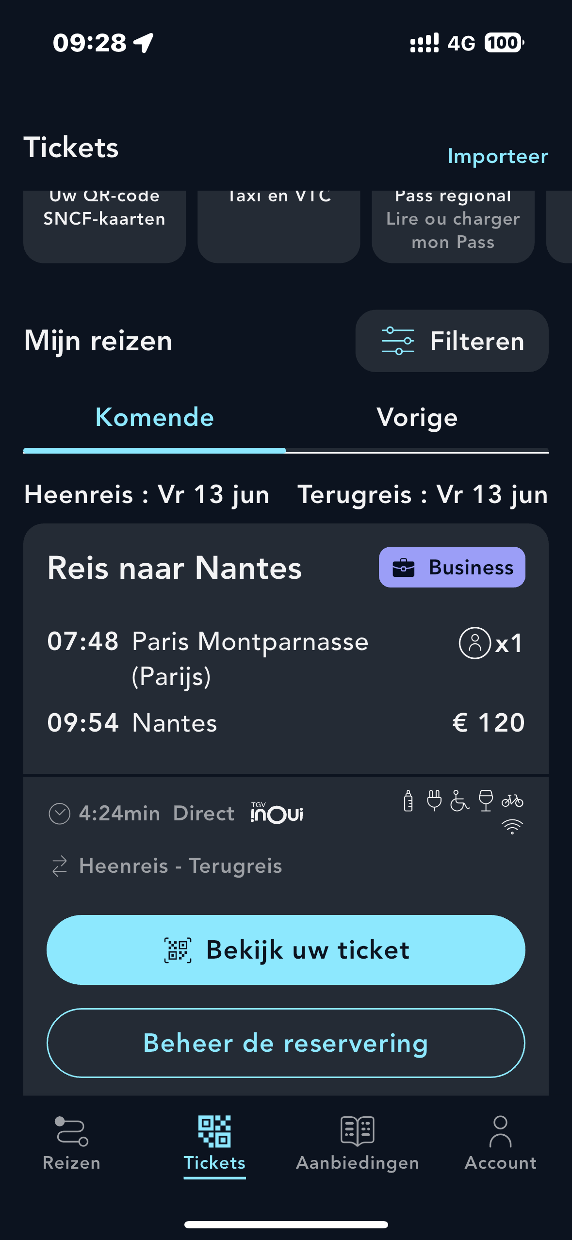 Ga naar de sectie Tickets, kies uw ticket en klik op "Beheer de reservering".